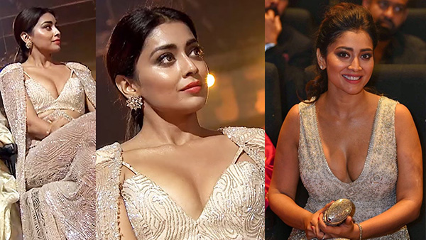 முன்னழகுகள் தெரிய ஸ்ரேயா காட்டிய கவர்ச்சியை பார்த்து வாய் பிளக்கும் ரசிகர்கள்!!