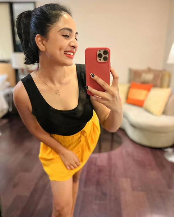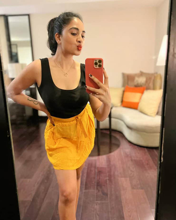 தற்போது கருப்பு நிற குட்டி டீ ஷர்ட் மற்றும் மஞ்சள் நிற குட்டி ஷார்ட்ஸ் போட்டு தொடையழகு தெரிய போட்டோ எடுத்து தனது இன்ஸ்டா பக்கத்தில் ஷேர் செய்து ரசிகர்களை சூடேற்றியுள்ளார்.