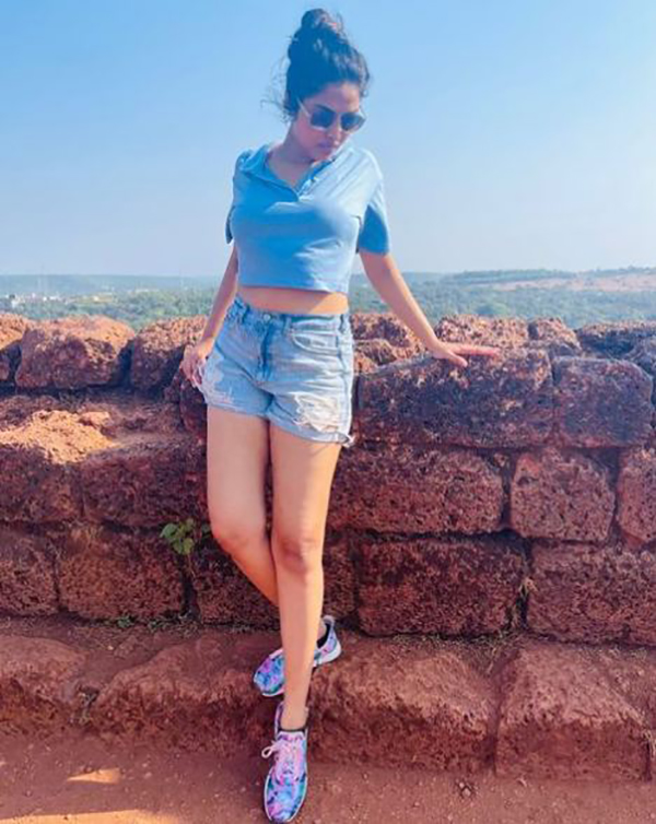 முன்னழகை பளிச்சென காட்டி ரசிகர்களின் சூட்டை கிளப்பிய திவி வாத்யா!!