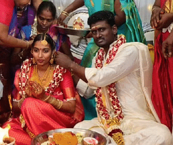 இந்நிலையில், தஞ்சை மாவட்டம் திருவையாறைச் சேர்ந்த புவனேஸ்வரியை மூன்று மதங்களின் சடங்குகளின்படி திருமணம் செய்துள்ளார் புருஷோத்தமன். இந்த திருமணத்திற்காக மூன்று மதங்களின் முறைப்படி மூன்று விதமாக பத்திரிகை அச்சிட்டு நண்பர்களுக்கு வழங்கியுள்ளார்.