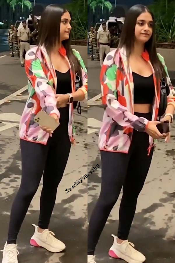 சினிமாவில் அறிமுகமான புதிதில் எங்கு தோன்றினாலும் புடவை அல்லது சுடிதார் சகிதம் ஆகவே தோன்றி வந்த நடிகை கீர்த்தி சுரேஷ் சமீபகாலமாக கவர்ச்சி உடைகளில் வருகிறார். பொதுவாக நடிகைகள் உடற்பயிற்சி கூடங்களுக்கு செல்லும்பொழுது உடலோடு ஒட்டிய உடைகளை அணிந்து கொண்டு காரில் இருந்து இறங்கி உடற்பயிற்சி கூடத்திற்கு சென்று இருபது முப்பது போஸ்களை கொடுத்து இணையத்தில் வைரலாவதை வாடிக்கையாக கொண்டு இருக்கிறார்கள்.