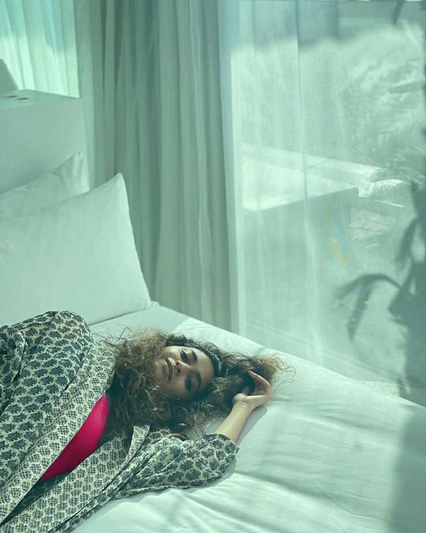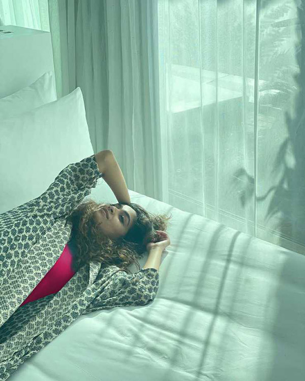 படுக்கையில் மேலாடையை திறந்து விட்டு மல்லாக்க படுத்தபடி இருக்கும் புகைப்படங்கள் சிலவற்றை வெளியிட்டு ரசிகர்களுக்கு ஏக்கம் மூட்டியுள்ளார் அம்மணி.