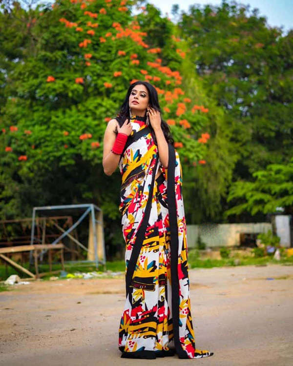 தற்போது சோசியல் மீடியாவான இன்ஸ்டாகிராமில் தனது கவர்ச்சியாக புகைப்படங்களைவெளியிட்டு ரசிகர்களின் கவனத்தை தன் பக்கம் ஈர்த்துள்ளார் பிரியாமணி .தற்போது பல வண்ண நிற சேலை அணிந்து போட்டோஷூட் புகைப்படங்களை தனது இன்ஸ்டாகிராமில் ஷேர் செய்து ரசிகர்கர்களை குஷி படுத்தியுள்ளார்.