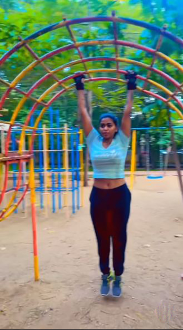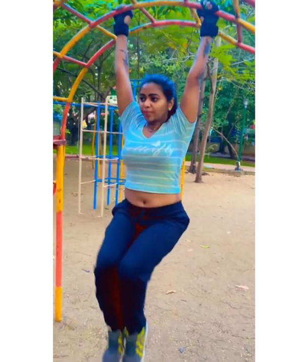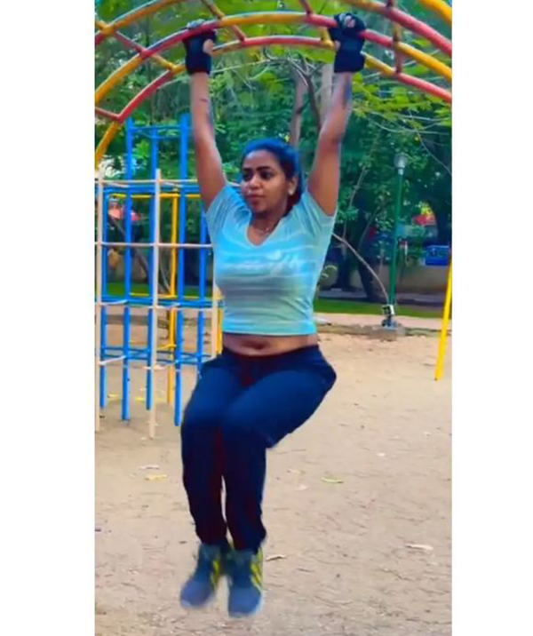 தன்னுடைய இணைய பக்கங்களில் அன்றாடம் கவர்ச்சி புகைப்படங்களை பதிவிட்டு வருகிறார். இவர் தற்போது பார்க் ஒன்றில் இருக்கும் மங்கி பாரில் தொங்கியபடி தன்னுடைய தொப்புளை காட்டும் புகைப்படங்கள் இணையத்தில் வைரலாகி வருகின்றது. சினிமா மட்டுமில்லாமல் அவ்வப்போது தொலைக்காட்சி நிகழ்ச்சிகளில் கலந்துகொள்ளும் இவர் பல விஷயங்களை வெளிப்படையாக பேசக்கூடியவர். இரண்டாம் குத்து திரைப்படத்தில் படுமோசமான கதாபாத்திரத்தில் நடித்திருந்த இவருக்கு