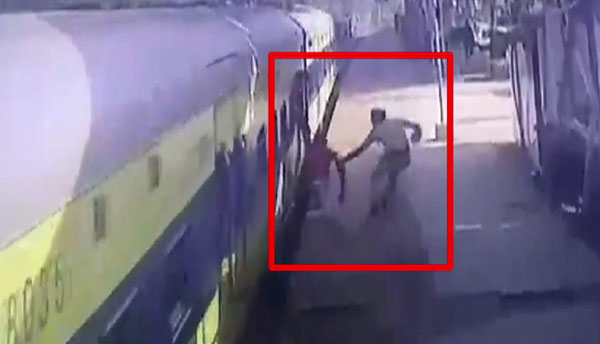 ம ராட்டிய மாநிலத்தில் நகர்ந்துகொண்டிருந்த ரயிலில் ஏற முற்பட்ட போது கால் த வறி கீழே விழுந்த மா ற்றுத் திறனாளி பயணியை ரயில்வே பா து காப்பு கா வ லர் ஒருவர் ப த் திரமாக மீ ட்டார்.