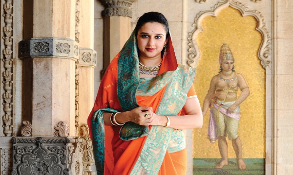 ராணி ராதிகாராஜேயின் அழகு புடவையில் முற்றிலும் வித்தியாசமாகத் தெரிந்தது. இந்தியாவில் அரசாட்சி கிட்டத்தட்ட முடிவுக்கு வந்துவிட்டாலும், சில மாநிலங்களில் பாரம்பரியம் இன்னும் பாதுகாக்கப்படுகிறது. குஜராத்தில் உள்ள பரோடா சமஸ்தானம் அவற்றில் ஒன்று.