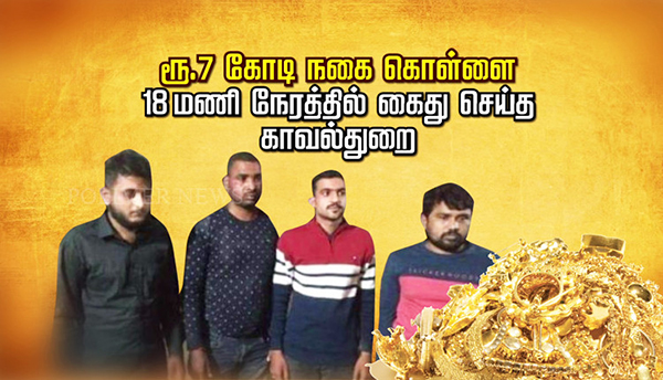 அதன் பலனாக கா ரி ல் செ ன் று கொண்டிருந்த ஐந்து பேர், க ண் டெ ய் னர் லாரி ஒன்றில் ந கை களுடன் சென்று கொண்டிருந்த இரண்டு பேர் என 7 பேரை ம ட க் கிப் பி டித் து கை.து செ.ய்.த.ன.ர். அ வ ர் க ளி டமிருந்து 25 கிலோ த ங் க ஆ ப ர ணங் கள், 96 ஆயிரம் ரூபாய், ஏ ழு கை.த்.து.ப்.பா.க்கிகள், து.ப்.பா.க்.கி தோ.ட்.டா.க்கள்,கா ர், க.ண்.டெ.ய்.ன.ர் லா ரி ஆ கி ய வற் றை ப றி மு தல் செ ய் தன ர்.