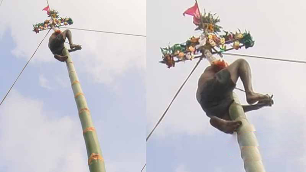 வழுக்கு மரம் ஏறும் போட்டியில் ஆர்வத்துடன் கலந்து கொண்ட 60 வயது முதியவர்!!