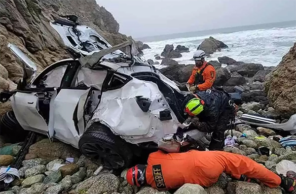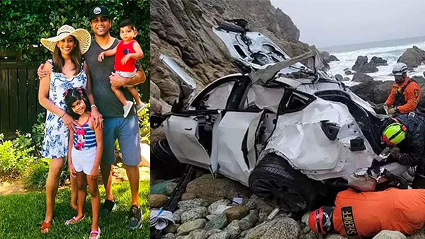 அமெரிக்காவின் கலிபோர்னியாவில் வசித்து வரும் தர்மேஷ் பட்டேல், டெவில் ஸ்லைடு என்ற செங்குத்து பாறைகள் நிறைந்த, அதிக ஆபத்தான பகுதிக்கு, தனது மனைவி, 9 வயது மகன் மற்றும் 4 வயது மகள் ஆகியோருடன் டெஸ்லா காரில் புறப்பட்டு சென்றுள்ளார்.