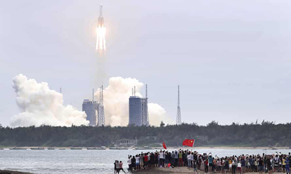 அமெரிக்காவைப் போல் தங்களுக்கென்று சொந்தமான விண்வெளி நிலையத்தை அமைக்கும் பணியில் சீனா ஈடுபட்டுள்ளது. அதன் ஒரு பகுதியாக, கடந்த மாத இறுதியில், லாங் மார்ச் 5-பி (Long March 5B) என்றழைக்கப்படும் 100 அடி உயர ரா.ட்.சத ராக்கெட்டை விண்ணில் செலுத்தியது.