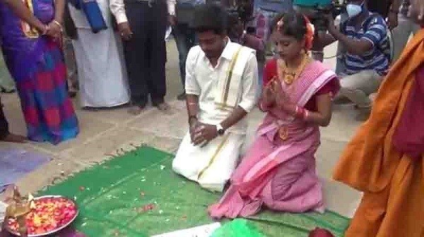 மூடநம்பிக்கை மற்றும் சடங்கு சம்பிரதாயம் இன்றி இருவரும் மாலை மாற்றிக் கொண்டு, தாலி கட்டி திருமணம் செய்து கொண்டனர். இதில் மாப்பிள்ளை வீட்டார் மற்றும் பங்கேற்றனர். சமூகத்திற்கு எடுத்துக்காட்டாக ஜாதி மறுப்பு திருமணம் செய்து கொண்ட இளம் ஜோடியை பலரும் வாழ்த்தி வருகின்றனர்.