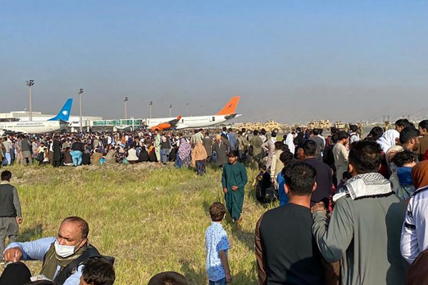 நாட்டை விட்டு வெளியேறும் நம்பிக்கையில் ஆயிரக்கணக்கான ஆப்கானியர்கள் காபூல் விமான நிலையத்தில் குவிந்துள்ளனர்.