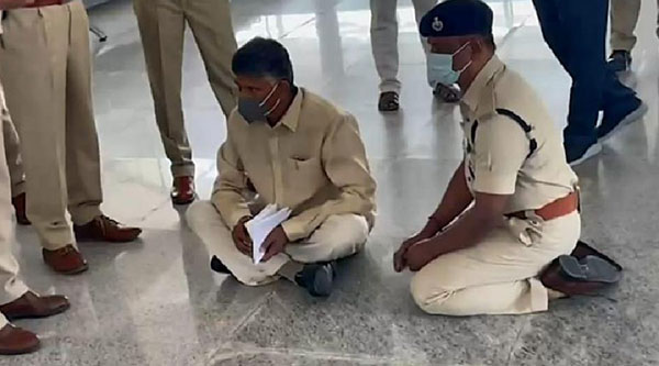 விமான நிலையத்தில் தரையில் அமர்ந்த ஆ ந் திரா முன்னாள் முதல்வர் சந்திரபாபு நாயுடு.. ம ண் டியிட்ட பொ லி ஸ்! எதற்காக? வெ ளி யான வீடியோ !!