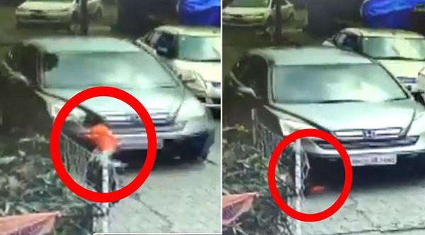 விளையாடிக் கொண்டிருந்த குழந்தை மீது ஏறிச் சென்ற கார் : நெஞ்சை பதபதைக்க வைக்கும் காட்சி!!