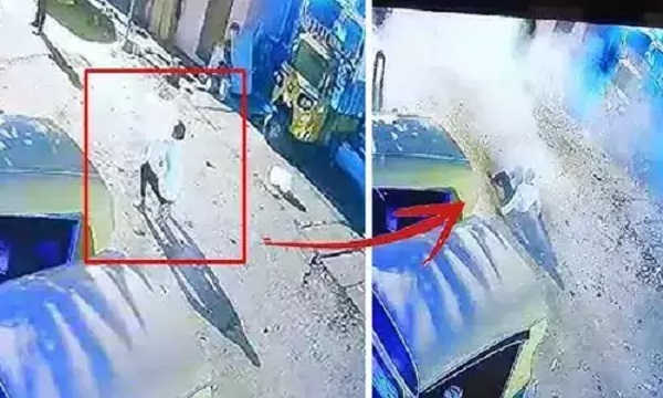 அவரது நண்பர்கள் பட்டாசை பற்றவைத்து விட்டு அங்கிருந்து ஓடிவிட்டனர். பயங்கரமான சத்தத்துடன் பட்டாசு வெடித்துள்ளது.