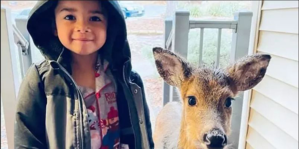 இதனை கண்டு ஆ ச் ச ரியமடைந்த சிறுவனின் தாய், உடனடியாக மானுடன், தன் மகன் நின்றதை புகைப்படமாக எடுத்து சமூக வலைத்தளத்தில் பதிவிட்டார். இந்த புகைப்படம் தற்போது சமூக வலைத்தளங்களில் வை ர லாக ப கி ர ப்பட்டு வருகிறது.