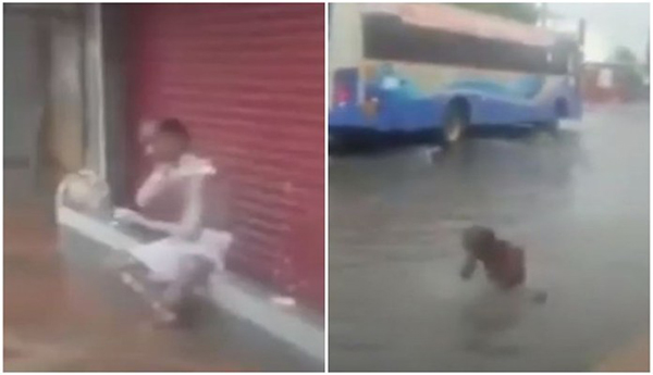 வீதியில் தேங்கி நிற்கும் நீரில் சோப்பு போட்டு குளிக்கும் முதியவரின் வீடியோ இணையத்தை கலக்கி வருகிறது.