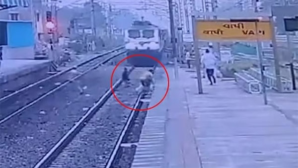 குஜராத் மாநிலம் வாபி ரயில் நிலையத்தில் முதியவர் ஒருவர், ஒரு நடைமேடையில் இருந்து மற்றொரு நடைமேடைக்குச் செல்வதற்காகத் தண்டவாளத்தில் இறங்கி நடந்து சென்றுள்ளார்.