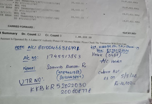 குறிப்பாக இரண்டு வருடங்களாக இந்தியன் வங்கியில் வந்து எந்த ஒரு குறுஞ்செய்திய தொலைபேசிக்கு வருவதில்லை எனவும் வங்கியின் மீது குற்றம் சாட்டி இருந்தார். வரும் காலங்களில் யாரை நம்புவது கூட என்பது தெரியவில்லை என வேதனையுடன் தெரிவித்திருந்தார்.
