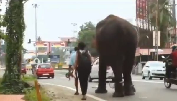 வைரலாகும் யானையின் நாகரீகம்..! நாயை மிதிக்காமல் நகர்ந்து செல்லும் யானை..!