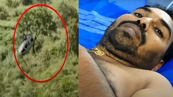 அங்கு வந்த அவர்கள், அந்த காரை மீட்கையில் காரில் பயணித்த நபர் ஒருவர் லேசான காயங்களுடன் மயக்கமடைந்த நிலையில் இருந்தார்.
