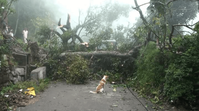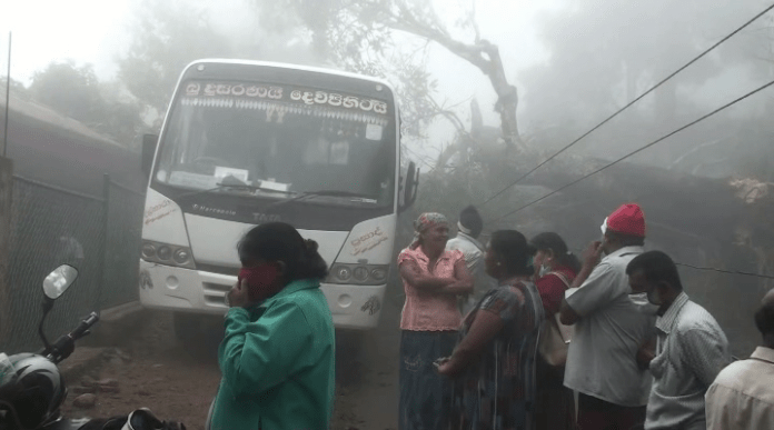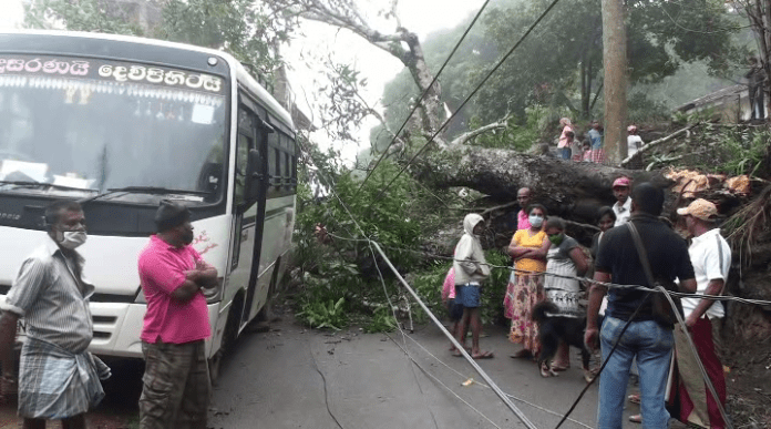 இப்பகுதியில் மின்சாரம் துண்டிக்கப்பட்டுள்ளதுடன், தொலைபேசி சேவையும் இடம்பெறவில்லை. “ மக்கள் விடுத்த கோரிக்கையின் பிரகாரம் குறித்த மரத்தை வெட்டி அகற்றுவதற்கு பிரதேச சபை அனுமதி வழங்கியுள்ளது.
