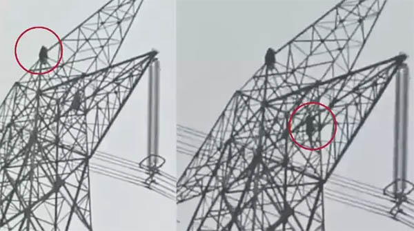 150 அடி உயர மின் கோபுரத்தில் ஏறி காதலி, காதலன் சண்டை.. அதிர்ச்சி வீடியோ!!