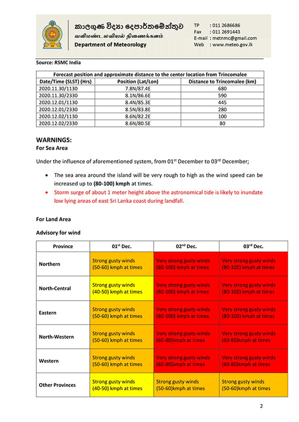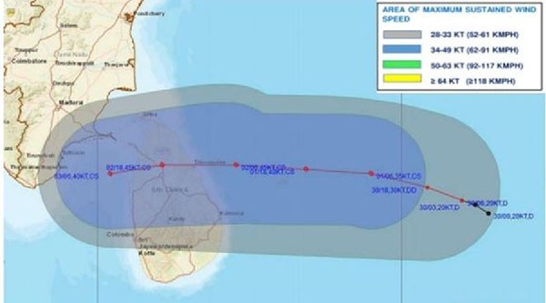 இந்த சூறாவளி இலங்கை ஊடாக பயணிக்கவுள்ளது. இதனால் நாடு முழுவதம் காற்று மற்றும் மழை ஏற்படும் என திணைக்களம் தெரிவித்துள்ளது. 20 வருடங்களின் பின்னரே சூறாவளி ஒன்று இலங்கை ஊடாக பயணிக்கவுள்ளதாக தெரிவிக்கப்படுகின்றது. இறுதியாக 2000ஆம் ஆண்டு சூறாவளி ஒன்று பயணித்துள்ளது.