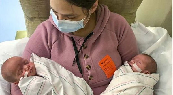 முதல் 34 வாரங்கள் அவர் நலமாகவே இருந்திருக்கிறார். அதன் பிறகு அவருக்கு pre-eclampsia எனும் உயர் ரத்த அழுத்த சிக்கல் ஏற்பட்டிருக்கிறது. இதனால் அறுவை சிகிச்சை மூலமாக 2021 ஆம் ஆண்டு செப்டம்பர் 5 ஆம் தேதி இரட்டை குழந்தைகளை வெளியே எடுத்திருக்கின்றனர் மருத்துவர்கள்.