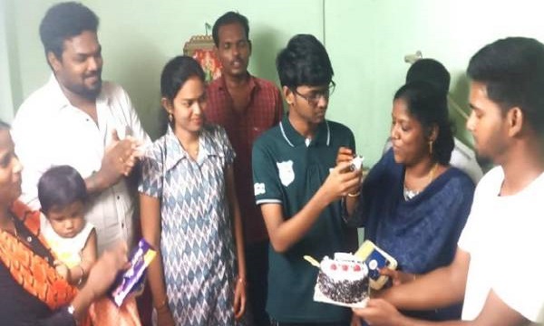 நீட் தேர்வில் முழு மதிப்பெண் எடுத்த அவரது பெற்றோர்கள் மற்றும் குடும்பத்தினர்கள் இனிப்புகள் ஊட்டி பாராட்டினர்.