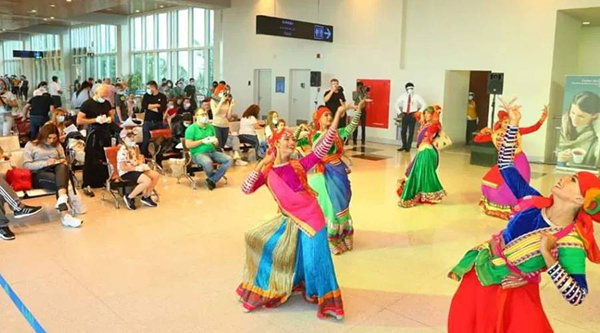 இந்த விமானத்தில் வந்த சுற்றுலாப் பயணிகளை வரவேற்கும் வகையில் விமான நிலையத்தில் கலை நிகழ்வுகள் நடத்தப்பட்டன. அதன் பின்னர் இவர்கள், இலங்கையின் கொவிட் த டு ப்பு ஒழுங்குவிதிகளுக்கு அமைய த னி மைப்படுத்தும் நடவடிக்கைகளுக்காக  ஒ து க்கப்பட்ட ஹோட்டல்களுக்கு அனுப்பி வைக்கப்பட்டுள்ளனர்.