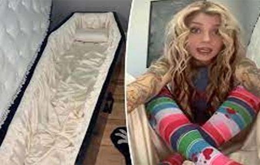 இளம்பெண் ஒருவர் தனது மன அமைதிக்காக மெத்தைக்கு பதில் சவ பெட்டியில் படுத்து உறங்கும் சுவாரசிய சம்பவத்தை இங்கு தெரிந்து கொள்வோம். லிஸ் என்ற பெண் ஒருவர் தனது படுக்கை அறைக்குள் 6 அடி நீளமான சவப்பெட்டியை மெத்தைக்கு பதிலாக பயன்படுத்தி, அதில் படுத்து உறங்கி வருகின்றார்.
