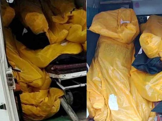 அ.ர.சு ம.ரு.த்துவமனை ஒன்றில் இ.ற.ந்த 22 பே.ர்.களின் ச.ட.ல.ங்களை ஓரோ பிளாஸ்டிக் பைகளில் நிரப்பி, ஒரே ஒரு ஆம்புலன்சில் எ.ரி.யூ.ட்ட கொண்டு செல்லும் காட்சி, நெஞ்சை உ.லு.க்.குவதாக உள்ளது.