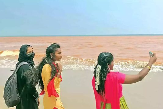 புதுச்சேரி தலைமை செயலகம் எதிரே உள்ள கடல் பகுதி காலை முதலே சிகப்பு நிறமாக காட்சி அளித்து வருகிறது. இது...