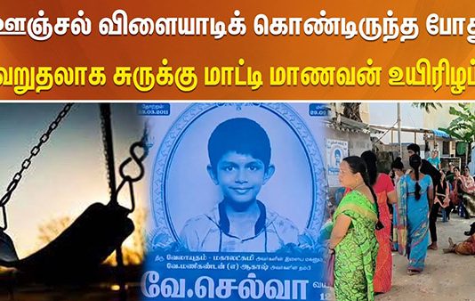 சென்னை கண்ணகி நகர், 2 அடுக்கு, 54வது குறுக்கு தெருவில் வசித்து வருபவர் வேலாயுதம். இவரது மனைவி மகாலட்சுமி. இவர்களின் இளைய மகன் செல்வா , தனியார் பள்ளியில் 7ம் வகுப்பு படித்து வந்தார். அவர்களது வீட்டில் குழந்தைகள் உறங்க கட்டப்படும் தொட்டில் போன்ற ஊஞ்சலை புடவையில் கட்டிவிட்டுள்ளனர்.