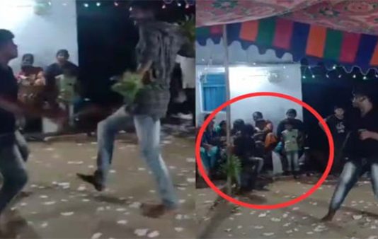 விநாயகர் சதுர்த்தி விழாவில் நடனமாடிக்கொண்டிருந்த இளைஞர் இருவரில் ஒருவர் மயங்கி விழுந்து உயிரிழந்த அதிர்ச்சி காட்சி வெளியாகியுள்ளது.