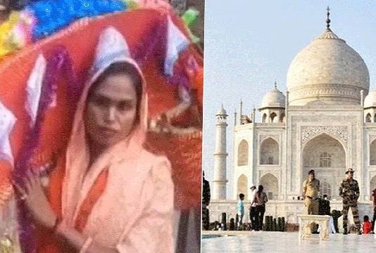 உலக அதிசயங்களில் ஒன்றான தாஜ்மஹால் மீது கங்கை நீரை தெளிக்க அத்துமீறி நுழைய முயன்ற பெண்ணை பொலிஸார் தடுத்து நிறுத்தியுள்ளனர்.
