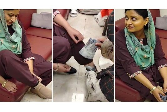 விமானப் பணிப்பெண் தனது காலுறைகளில் நிறைய அமெரிக்க டொலர்களையும் சவுதி ரியாலையும் மறைத்து வைத்திருந்தார்.
