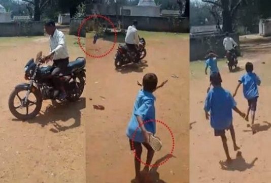 மது போதையில் வந்த ஆசிரியரை செருப்பால் அடித்து ஓடவிட்ட மாணவர்கள் : வைரலாகும் காணொளி!!