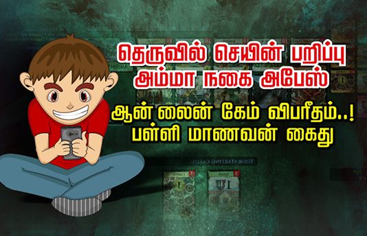 சென்னை கொடுங்கையூரில் ஆன்லைன் வகுப்பிற்கு வாங்கிக் கொடுத்த செல்போனில், கலர் டிரேடிங் என்ற புதுவித லாட்டரி சூ.தா..ட்.ட வி ளை யாட்டிற்கு அ.டி.மை.யா.ன மாணவர் ஒருவர், தாயின் ந கையை அ ட மா னம் வை த்து சூ.தா.டி.த் தோ.ற்.ற.தோ.டு, தெ.ருவில் நடந்து சென்ற பெ ண் ணின் நகையை ப.றி..த்.து போ.லீ.சி.ல் சி.க்.கி.யு.ள்ளார்.