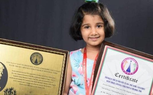 வெறும் 4.17 நிமிடத்தில் 150 நாடுகளின் கொடிகள், தலைநகரங்களை கூறி 5 வயது சிறுமி உலக சாதனை!