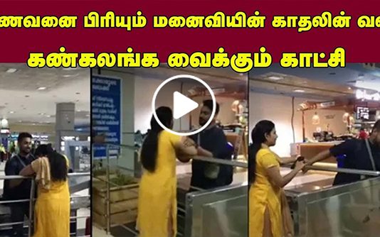 வெளிநாட்டு வேலைக்கு செல்லும் கணவன்.. கண் கலங்கும் மனைவி… விமான நிலையத்தில் பாசப் போ ரா ட்டம்…!