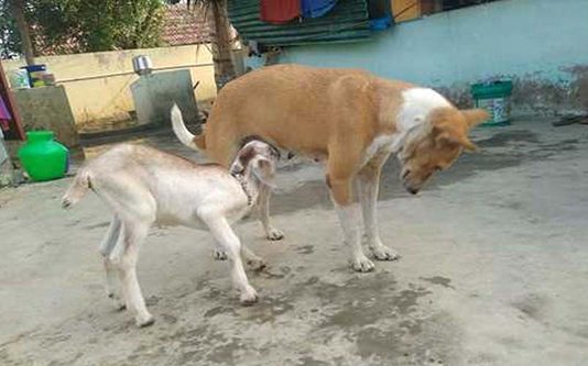 தன் தாயை இழந்த ஆட்டுக்குட்டிக்கு, நாய் ஒன்று பாலூட்டி சீராட்டி வளர்த்து வரும் நிகழ்வு காண்போரை நெகிழச் செய்துள்ளது. புதுக்கோட்டை மாவட்டம் குமரமலை கிராமத்தைச் சேர்ந்தவர் துரைச்சாமி. இவர் வளர்க்கும் நாய் தான் ஆட்டுக்குட்டி ஒன்றுக்கு பால் ஊட்டி வருகிறது. இந்த குட்டியை ஈன்ற தாய் ஆடு நான்கே நாட்களில் உ யி ரி ழ ந்துள்ளது. உண்ண உணவு இல்லாமல் த வி த்து வந்த தாய்...