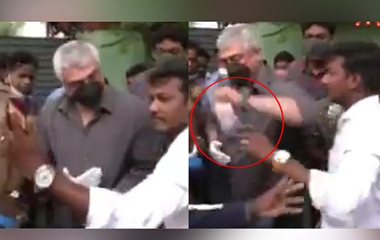 அப்போது ரசிகர்கள் பலர் நடிகர் அஜித்துடன் புகைப்படம் எடுக்க முண்டியத்தனர். ரசிகர் ஒருவர் அஜித்துடன் செல்பி எடுக்க முயன்றார். இதனால் எரிச்சலடைந்த நடிகர் அஜித்...