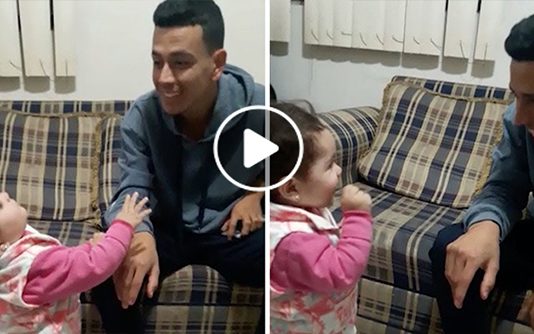 காதுகேளாத தந்தையிடம் அவரின் குழந்தை செய்கையின் மூலம் பேசும் காட்சி சமூகவலைத்தளத்தில் லைரகி வருகின்றது.