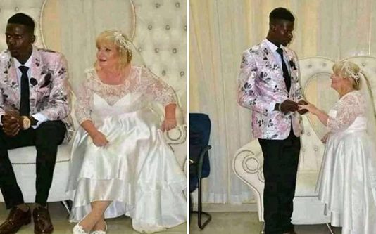 நைஜீரியாவை சேர்ந்த இளைஞன் தன்னை விட மிகவும் வயதான பெண்ணை மணந்து கொண்ட புகைப்படங்கள் வெளியாகியுள்ளது.