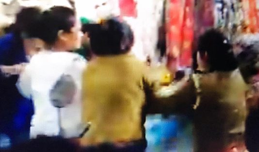 உத்திர பிரதேசத்தில், கடைவீதி ஒன்றில் துணி வாங்கி கொண்டிருந்த பெண்கள் இடையே ச_ண்டை ஏற்பட்டு பெரும் களேபர நிகழ்வாக முடிந்துள்ளது.