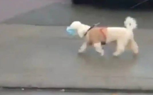 இணையத்தில் நாய் ஒன்று முககவசம் அணிந்து செல்லும் வீடியோ காட்சி ஒன்று வைரலாகி வருகிறது.
