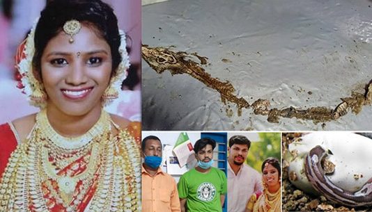 கேரளா மாநிலம் கொல்லம் அஞ்சல் பகுதியைச் சேர்ந்த உத்ரா என்ற பெண்ணிற்கும் சூரஜ் என்பவருக்கும் திருமணம் முடிந்தநிலையில் உத்ராவை பாம்பு கடித்து மிகவும் ஆபத்தான நிலையில் மருத்துவமனையில் அனுமதிக்கப்பட்டு சிகிச்சை முடிந்து வீட்டிற்கு திரும்பினார்.