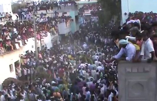 ஆந்திர விழாவில் காற்றில் பறக்க விடப்பட்ட கொரோனா கட்டுப்பாடுகள்..! பக்தர்களின் செய்கையால் ஆந்திராவில் ச ர்ச்சை!!